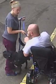 The bite occurred on the north side of Birch Street (near the Sunoco gas station). The dog was described as a black lab mix, with a shock collar and a blue leash. The dog was being walked by a white, bald male wearing a white t-shirt in a wheelchair along with a female in purple scrubs and a young male.