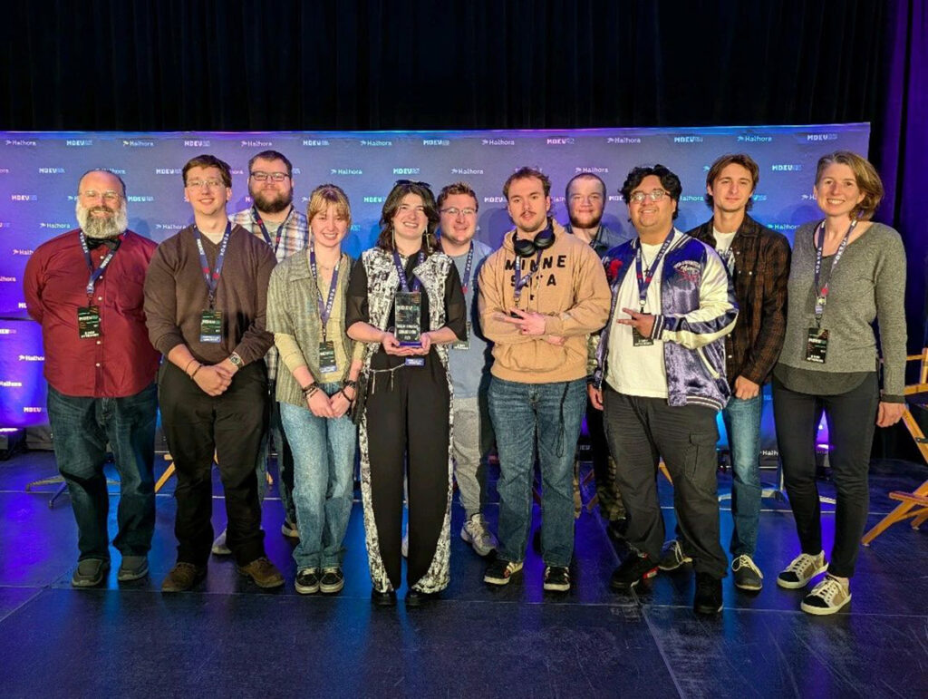 Six months later, the Dread Not team received more accolades, winning the award for best student entry at M+DEV, the largest game industry conference in the Midwest, which drew 1,500 attendees to Madison Nov. 7-8 and featured two days of expert-led panels and speakers, game showcases, workshops and networking. M+DEV served as a platform for the creativity, skill and scholarship generated by UW-Stout’s globally and nationally ranked game design program.