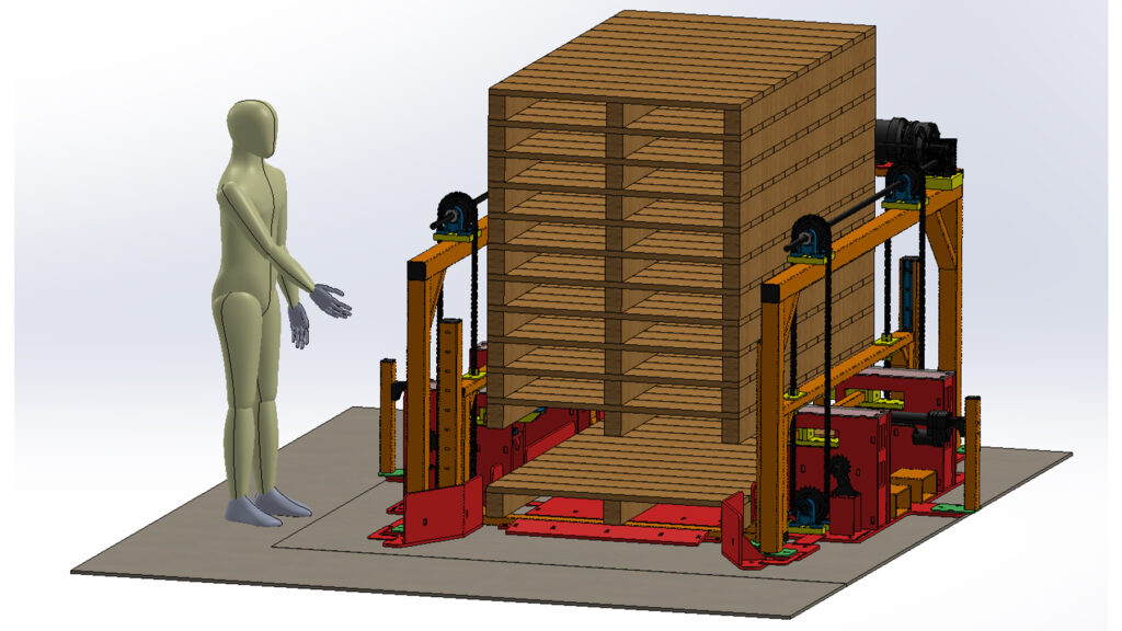 A digital SolidWorks model of the Ashley Furniture nonstandard pallet stacker.