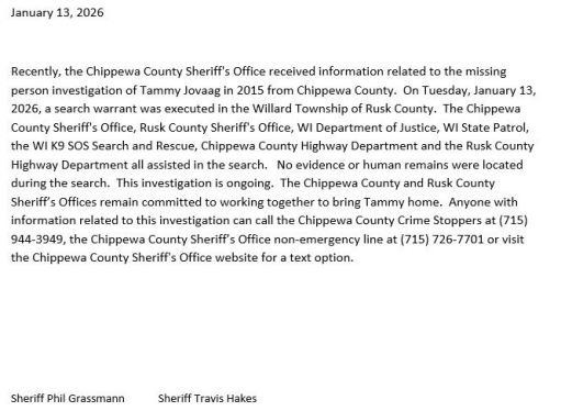 Search Warrant Issued After Information Came in About a Missing Persons Case, Investigation Continues