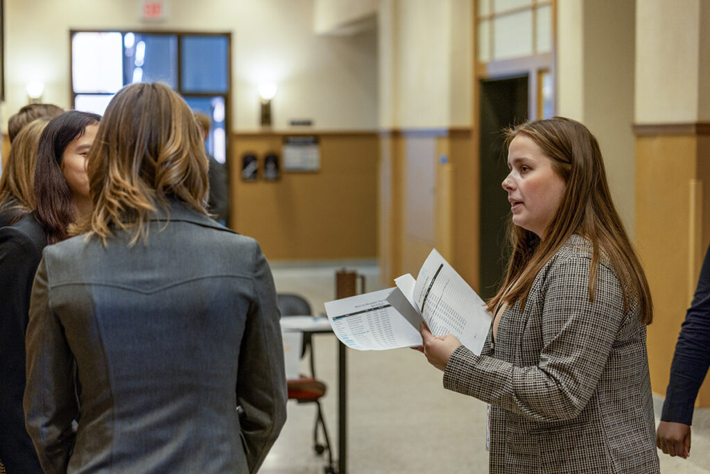 Stanislawski said that coordinating the event “requires a diverse set of skills that mirror the real-world demands of teaching, advising and leadership.” MBEA students must do everything from implementing registration systems and setting prices to ordering awards and organizing opening and closing sessions — which includes securing keynote speakers and even making speeches to the attendees themselves. During the conference, she added, UW-Stout students help run the competitive events, facilitate social activities, make sure the awards ceremony goes smoothly and more.