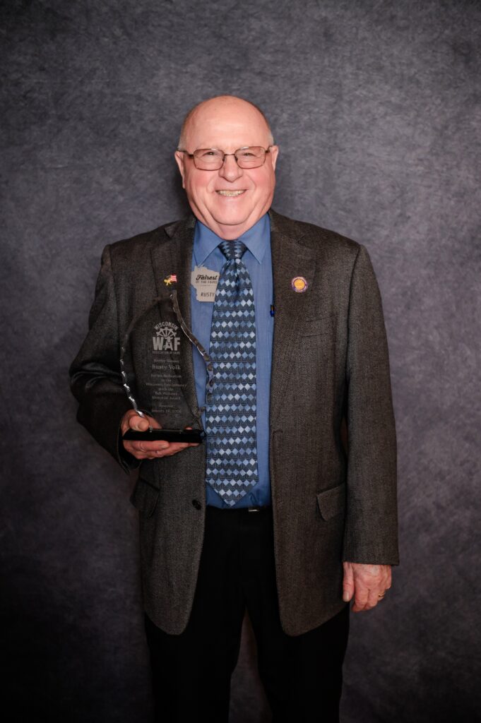 The Wisconsin Association of Fairs (WAF) has named Rusty Volk, past Northern Wisconsin State Fair Association Executive Director, the recipient of the 2025 Bob Williams Memorial Award, recognizing his outstanding dedication and leadership within the Wisconsin fair industry.