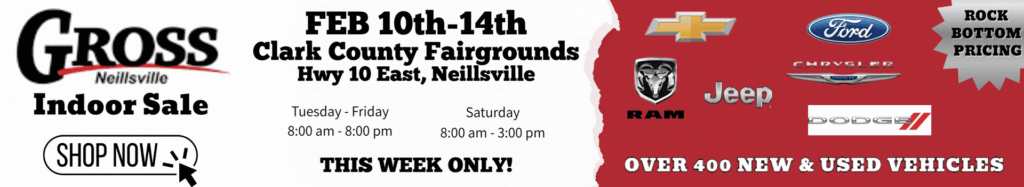 If you are itching for a funnel cake, but know we are months away from the Midway’s opening, you can scratch your itch for a “fair vibe” in Neillsville just by going to the Clark County Fairgrounds for an indoor auto sale…where you are sure to find a “fair deal!”