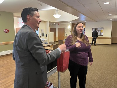 WDVA leadership and members of the Wisconsin Board of Veterans Affairs (BOVA) personally delivered valentines to veterans at the Wisconsin Veterans Homes in Chippewa Falls, King, and Union Grove, and to veterans residing at WDVA’s Veterans Housing and Recovery Program (VHRP) in Union Grove.
