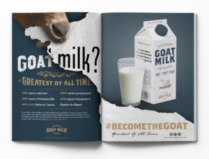 Read MoreAn advertising concept by a University of Wisconsin-Stout graphic design major has earned a second major honor. In the spring, Daniel Nesja’s GOAT Milk? print advertisement won Best in Show in the student division of the Minnesota AdFed awards, sponsored by the Advertising Federation of Minnesota. He advanced to the national American Advertising Awards competition and recently took a silver award in the Student Print Advertising: Magazine Campaign division. Only gold and silver were awarded. Nesja, of Mount Horeb, uses GOAT as an