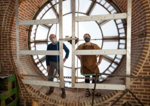 Read MoreThe recent renovations to historic Bowman Hall at University of Wisconsin-Stout are easy to see and appreciate. They include historically accurate new windows and doors, replacement bricks and stone, a new copper roof on the Clock Tower and a restored quill weathervane. The nearly $9 million project on the 1897 building began in spring 2018 and wrapped up in spring 2020. Hidden from view during the project, however, were less glamorous but necessary renovations to the interior of the Clock Tower.
