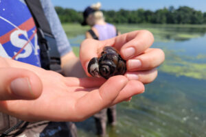 Read MoreABOVE PHOTO: LAKES students look for zebra mussels on Lake Menomin for a research survey on the invasive species. Undergraduate researchers from across the U.S. and Canada have spent the summer in the Chippewa Valley investigating water quality awareness, invasive species, groundwater pollutants, public opinion and local mitigation for positive change in the Red Cedar watershed. Led by University of Wisconsin-Stout co-directors Professor Tina Lee and Senior Lecturer Arthur Kneeland, LAKES REU students from eight universities are collaborating on research to improve the health