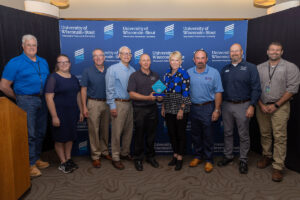 Read MoreABOVE PHOTO: Campus Planner Michael Higgins, Sustainability Manager Kadi Wright, Xcel Energy’s Mike Plunkett and David Voss, Senior Facilities Officer Justin Utpadel, Chancellor Katherine Frank, State Rep. Clint Moses, Facilities Management Associate Director Zenon Smolarek and Engineering Specialist Josh Kohnke. For its collaboration and commitment to sustainability and energy efficiency in multiple campuswide initiatives in the last two decades, University of Wisconsin-Stout has received an Energy Efficiency Excellence Award from Focus on Energy, Wisconsin’s statewide energy efficiency and renewable resource program. UW-Stout, the only university