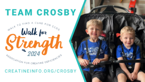 Read MoreOn Saturday, June 15, 2024, local Mondovi families will come together to participate in the international annual Walk for Strength event to raise funds, advocate, and support research for a cure for Cerebral Creatine Deficiency Syndromes (CCDS). Crosby Williams is a 5.5 year old who was diagnosed with Creatine Transporter Deficiency in 2021. Due to his CTD diagnosis, Crosby, a sweet and happy boy, is affected by symptoms including seizures, developmental delays, speech delays, and more. Until a treatment or
