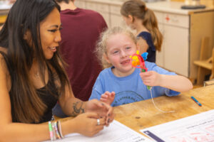 Read MoreABOVE PHOTO: Technology education student Lucas Edson, right, talks with a classmate and first-grader about their toy design. On an early fall morning, 23 children from St. Paul’s School of Menomonie recently walked four blocks to University of Wisconsin-Stout’s Woods Lab in Jarvis Hall Tech Wing, unknowing of what their day would bring. Lining up single file at the back of the classroom, they quietly peered over university students in a Design for Industry class led by Assistant Professor Kevin Dietsche. “Everything is designed