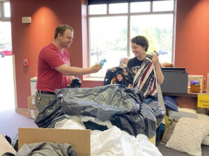 Read MoreABOVE PHOTO: Mark Klapatch-Mathias, coordinator of the UWRF Sustainability Office, shows a toy to student Amber Rappl as they sort items donated as part of the Don’t Throw It, Donate It! project. Julian Emerson/UWRF photo. “There are lots of treasures in here…” An annual waste reduction effort at the University of Wisconsin-River Falls is getting items that would be otherwise destined for a landfill to people who need them. Volunteers working with the Don’t Throw It, Donate It! program collected
