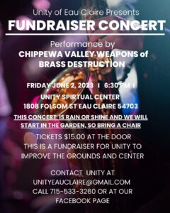 Read MoreUnity of Eau Claire is partnering with the Weapons of Brass Destruction Band for a Fundraising Concert to improve the grounds and center at Unity Spiritual Center. In Spring 2014, trombonist Tom Carlson set out to rectify the situation by starting this band with some cream-of- the-crop horn and percussion players. Our musical roots are definitely from the Crescent City, You can expect a funky R&B, afro, and mambo grooves mix and you can LEARN MORE WITH AN EASY CLICK