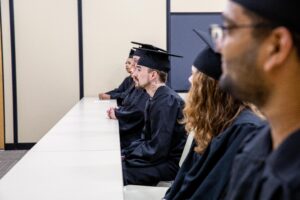ABOVE PHOTO: Devyn McCormick, 25, right, earned his General Equivalency Degree in only a few days at Chippewa Valley Technical College. He was so close to earning his high school diploma from Chippewa Falls Senior High School in 2016 but fell short. Now, with his GED in hand, he will apply to the U.S. Navy. Devyn McCormick, donned in a black robe and graduation cap, filed into an auditorium at Chippewa Valley Technical College recently and immediately turned to scan
