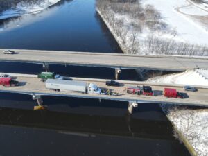 Read MorePhoto credit: Chippewa Falls Police Department Facebook A crash on Highway 53 at the Chippewa River disrupted traffic. Today (02/01/2023) at 10:49am the Chippewa Falls Police Department responded for a report of a multi-vehicle crash on Highway 53 in the northbound lane on the bridge over the Chippewa River. Wisconsin State Patrol, Lake Hallie Police Department, Chippewa Fire District, Chippewa Falls Fire and Emergency Services and the Chippewa County Highway Department responded. The Mayo 1 helicopter was launched as well